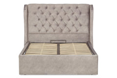 This sumptuous Baker ottoman is princely and practical. The nifty underbed storage means you can sleep soundly with extra space, while the winged headboard and high-grade padding makes a plush spot to sit back with the morning papers.